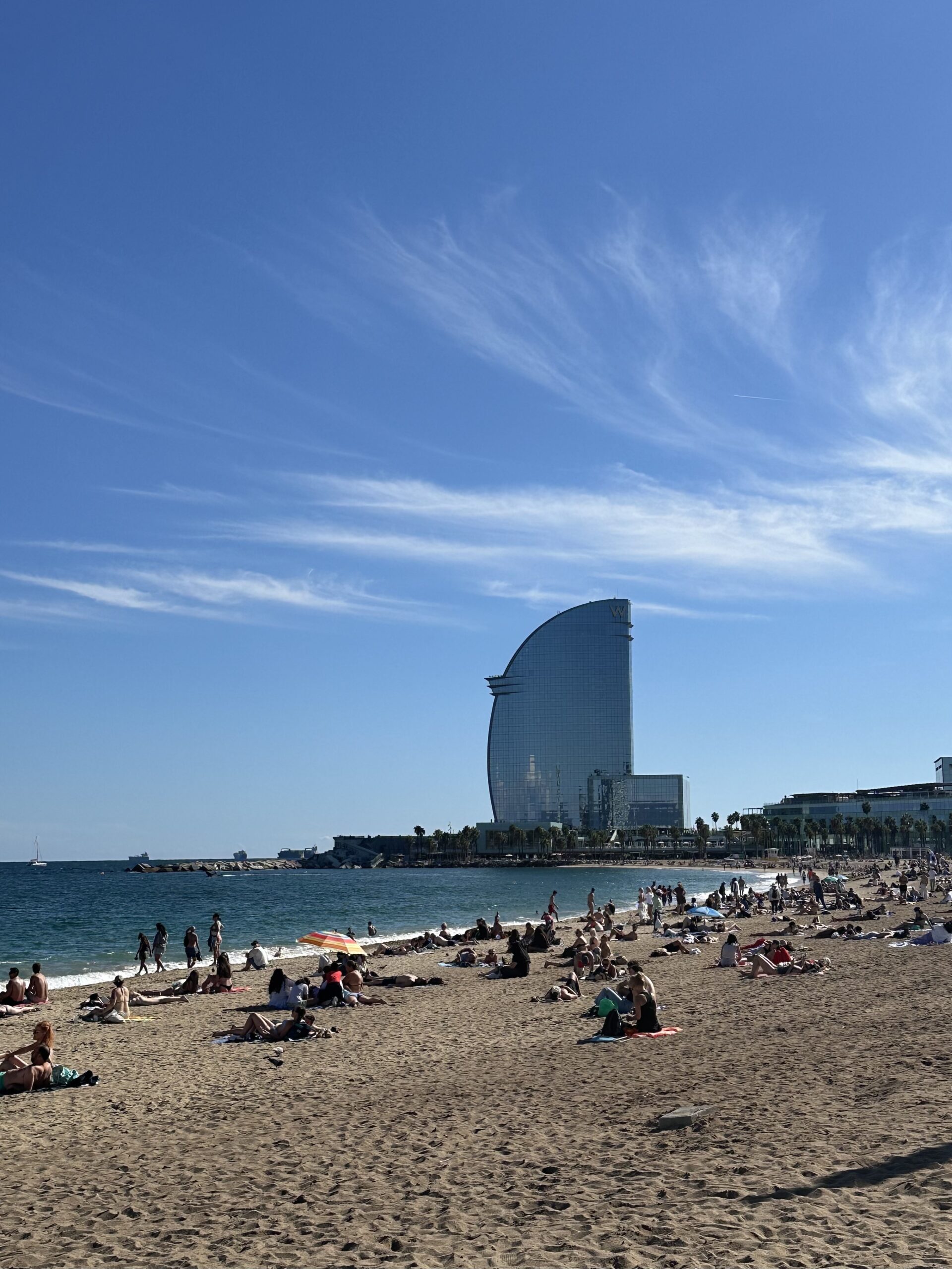 Barceloneta is a lively seaside neighborhood in Barcelona known for its sandy beaches, seafood restaurants, and relaxed Mediterranean atmosphere.