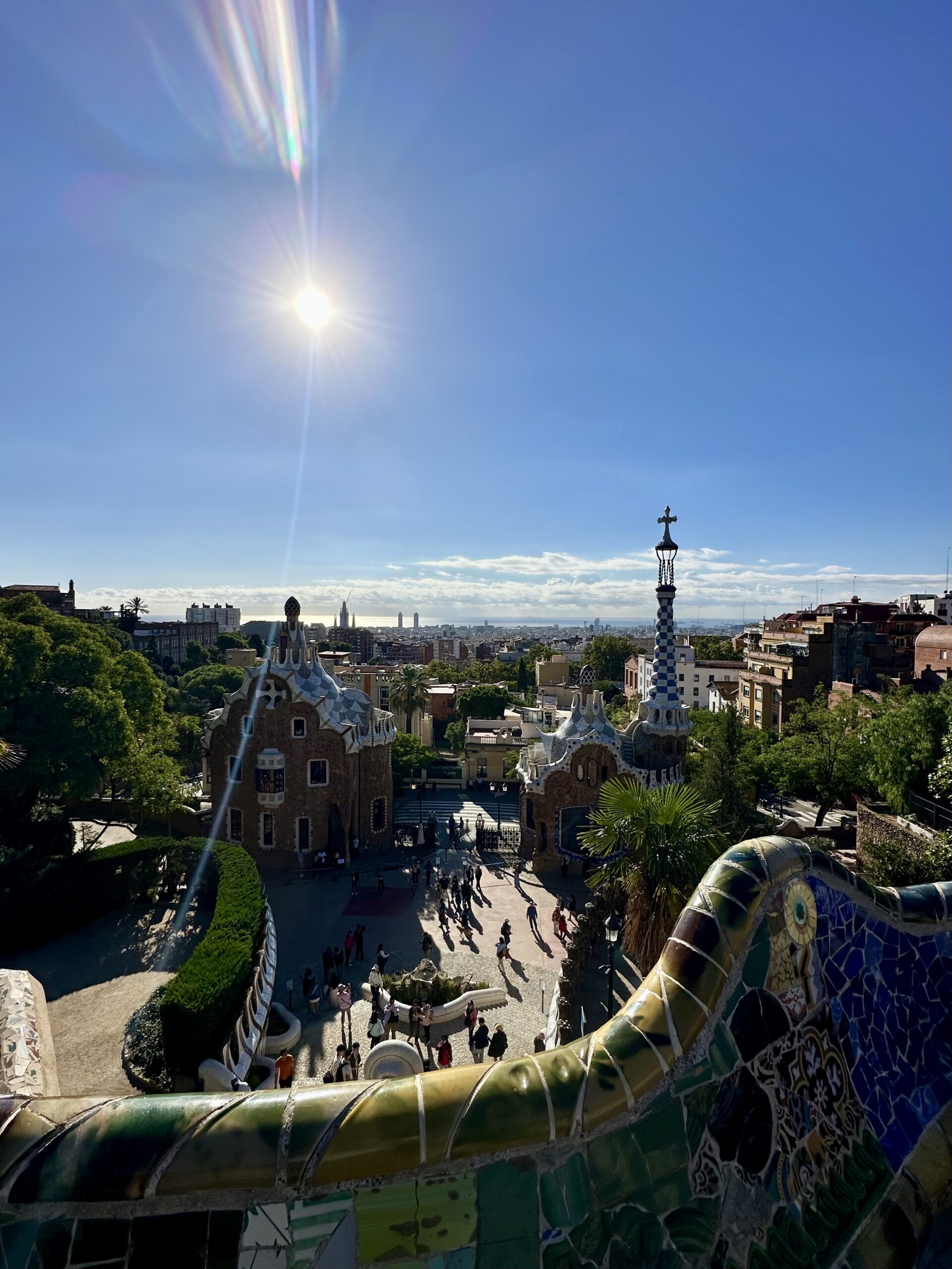 Gaudí used broken ceramic tiles, called trencadís, to create the park’s vivid mosaics.