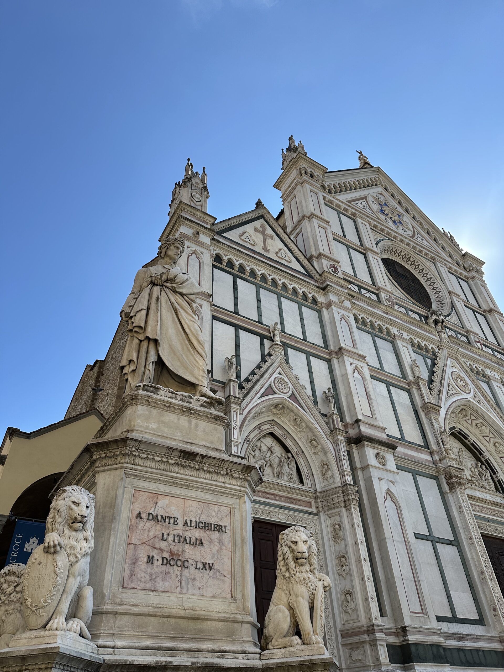 Its modern façade, from the 19th-century, features several portrait busts of thinkers and artists tied to Florence, not just saints, such as Brunelleschi, Dante Alighieri, Galileo Galilei, Da Vinci, Michelangelo, Raffaello, among others.
