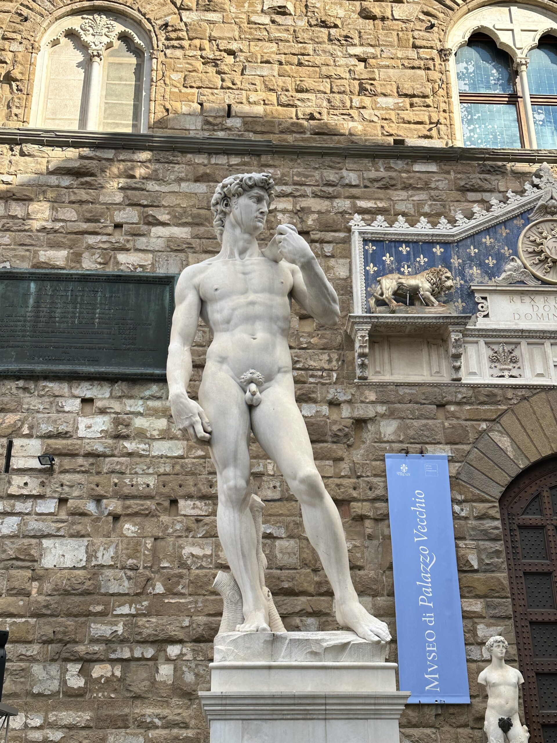 his replica of Michelangelo’s David stands in Piazza della Signoria, where the original remained for nearly four centuries before being moved to the Galleria dell’Accademia to protect it from weathering and damage.