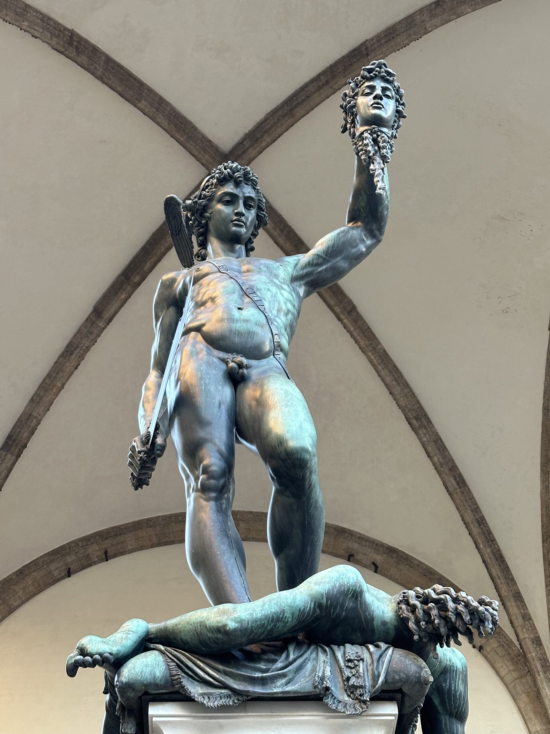 Perseus with the Head of Medusa by Cellini is displayed at the Piazza della Signoria.