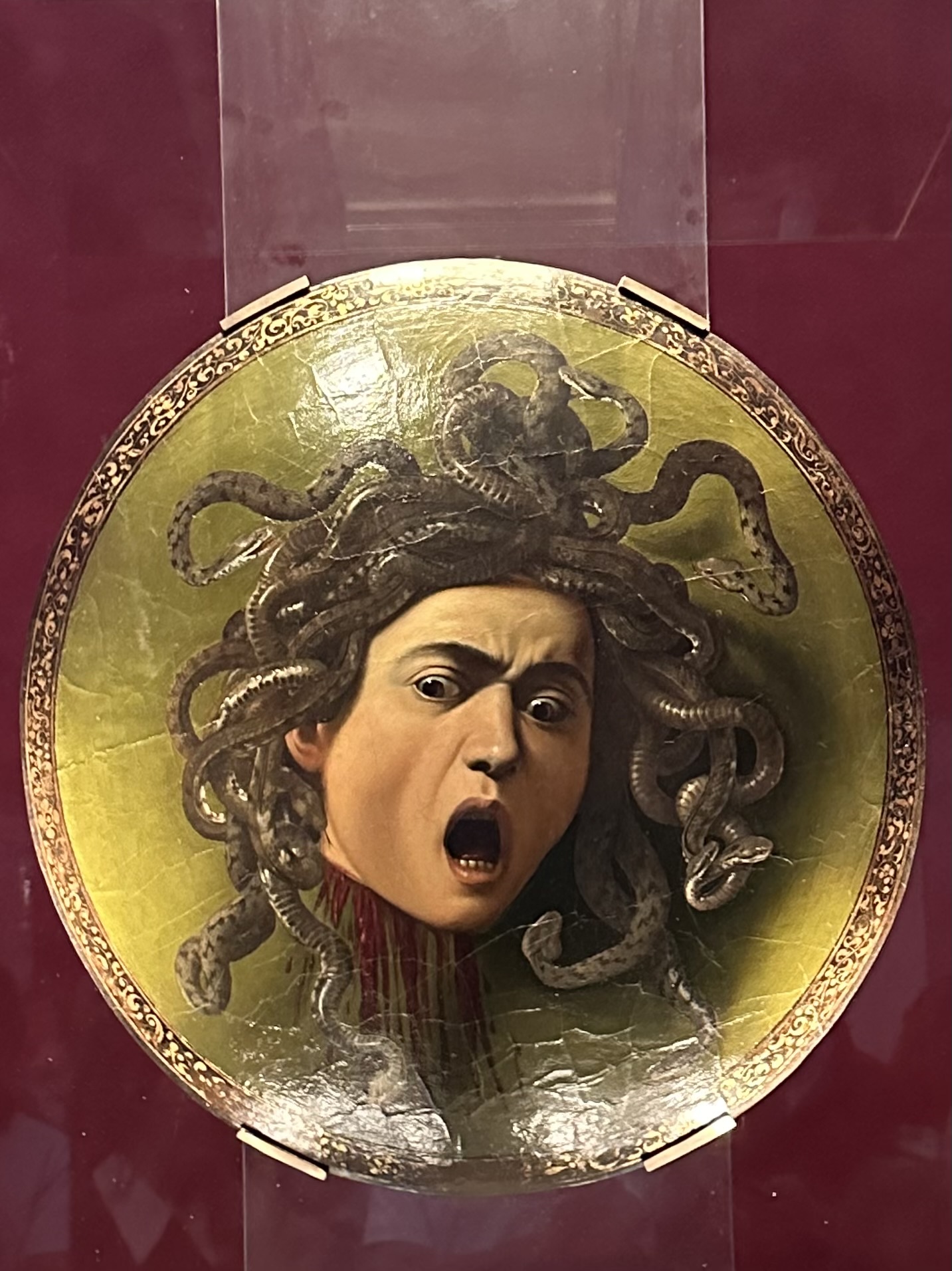 Caravaggio’s Medusa depicts the severed head of the mythical Gorgon.